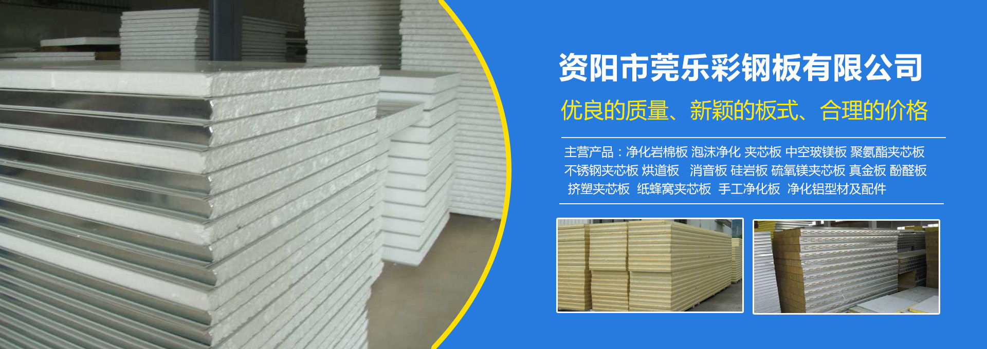資陽市莞樂彩鋼板有限公司成立于2017年03月08日,位于資陽市樂至縣西郊工業園,廠區占地面積2500多平方,擁有多條彩鋼板生產線。交通十分便利,地理位置優(yōu)越。公司從事凈化巖棉板、泡沫凈化夾芯板、中空玻鎂板、聚氨酯夾芯板、不銹鋼夾芯板、烘道板、音板、硅巖板、硫氧鎂夾芯板真金板、酚醛板、擠塑夾芯板、紙蜂窩夾芯板、手工凈化板、凈化鋁型材及生產和銷售的新型建材企業。擁有一批專業過硬、作風穩(wěn)健的生產技術人員和經營管理精英,公司內部良好的組織氛圍、優(yōu)良的企業文化和科學的經營管理,使公司成為一家活力的現代化經營企業。